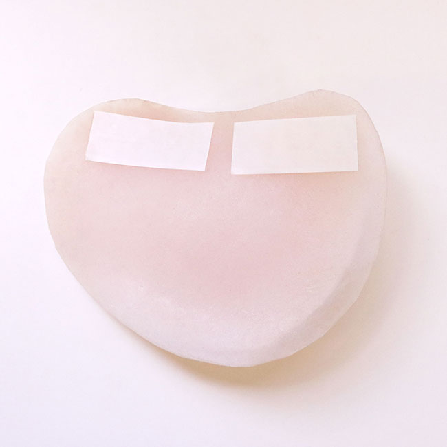 テープにはカーブがついているので、人工乳房のフチに沿わせながら貼り付けることができます。
